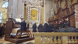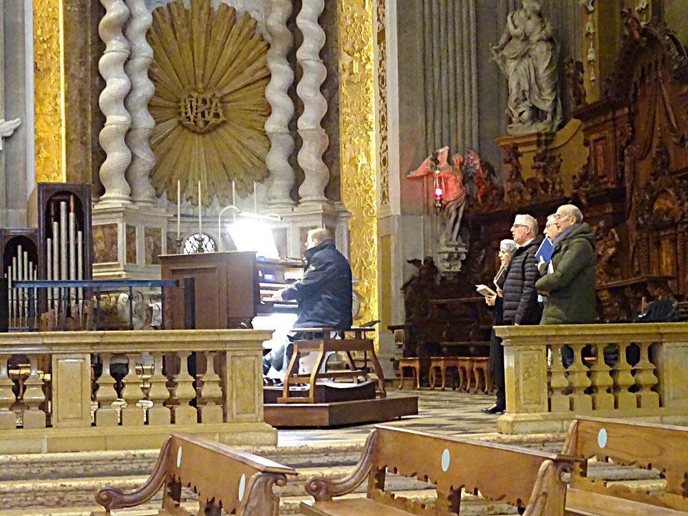allo smantellamento del grande Presepio, cominciando dalle figure pių ingombranti)...in attesa della celebrazione di "Messe grande" fissata per le ore 10:30 e mentre in presbiterio si stava completando l'organico della Cappella Musicale del Duomo di Udine, l'organista titolare Beppino Delle Vedove eseguiva il classico brano natalizio... (che vi presentiamo scusandoci per gli inevitabili rumori ambientali captati)