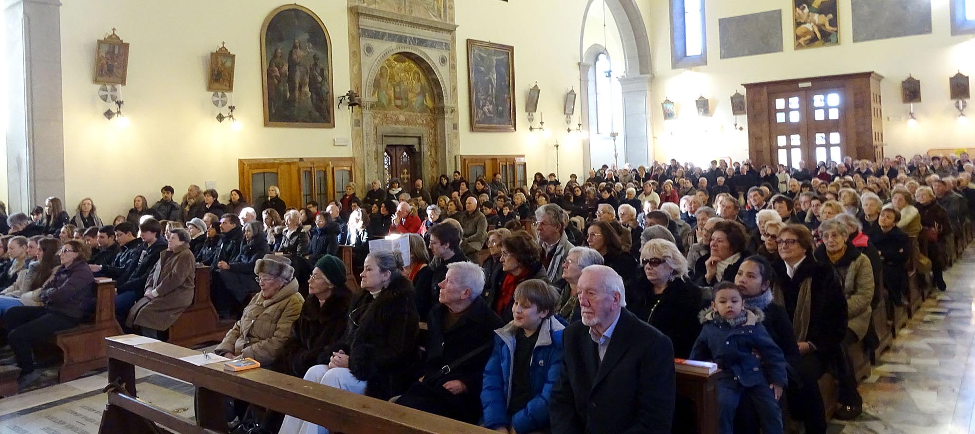 ...vedute traversali sulla navata stracolma di fedeli...
