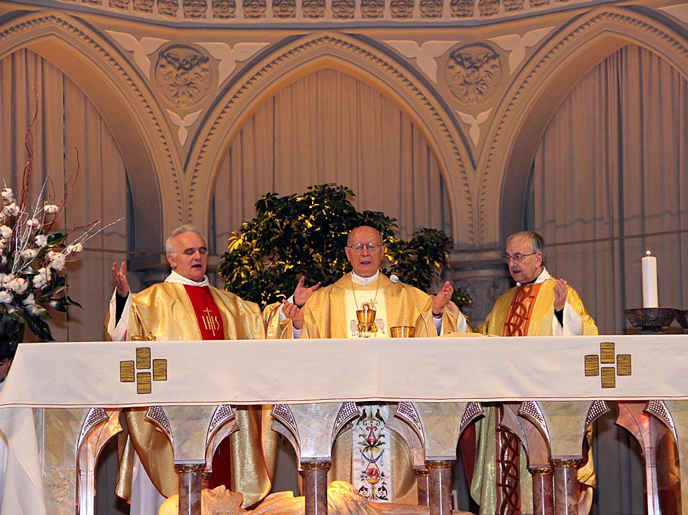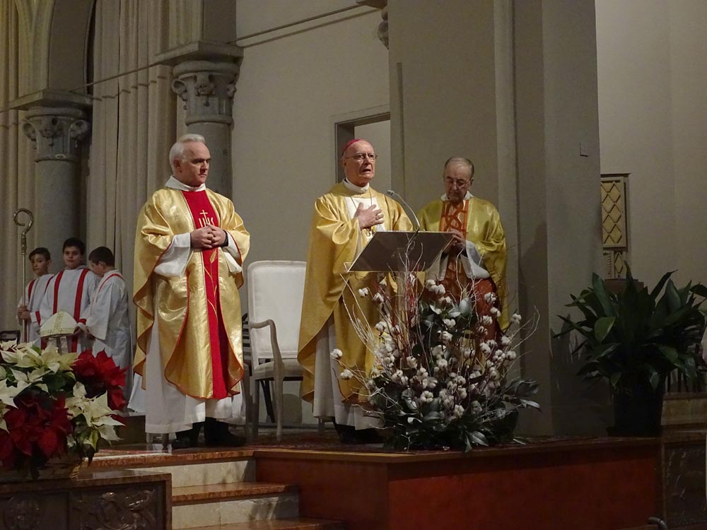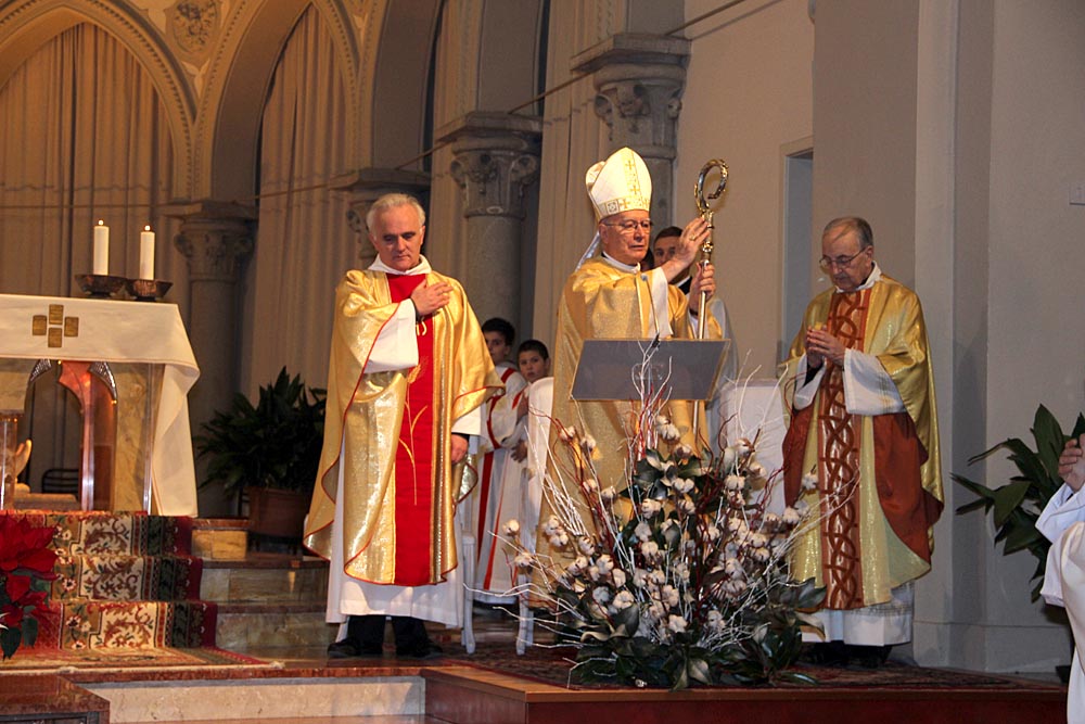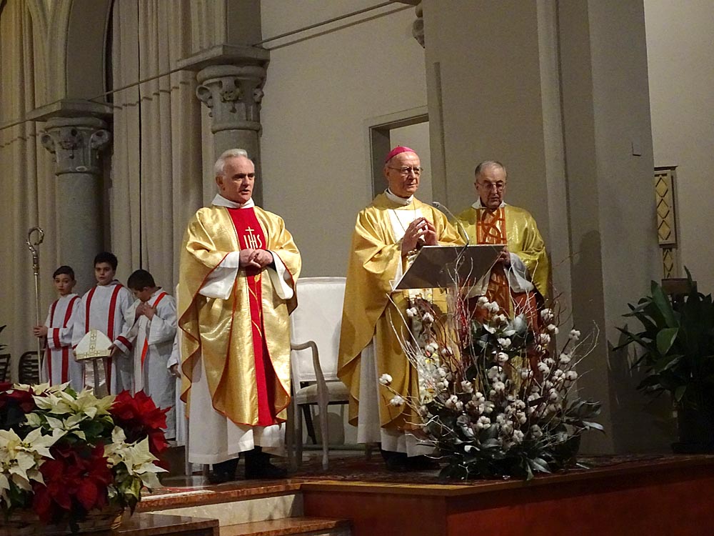 Mons. Diego Causero - Nato a Moimacco, è stato ordinato sacerdote del clero di Udine dall'arcivescovo Giuseppe Zaffonato, il 7 aprile 1963. Il 15 dicembre 1992 fu nominato nunzio apostolico per il Ciad; il 6 gennaio dell'anno successivo viene nominato nunzio apostolico anche per la Repubblica Centrafricana e la Repubblica del Congo; lo stesso giorno è consacrato arcivescovo titolare di Meta nella Basilica di San Pietro per le mani di papa Giovanni Paolo II, co-consacranti i cardinali Giovanni Battista Re e Justin Francis Rigali, con il titolo personale di arcivescovo. Nel 1995 e nel 1999 rispettivamente lascia le nunziature apostoliche della Repubblica Centrafricana e del Congo; il 31 marzo 1999 è nominato nunzio in Siria. Il 24 febbraio 2001 gli viene assegnato il titolo arcivescovile di Grado, e il 10 gennaio 2004 è nominato nunzio apostolico nella Repubblica Ceca. Il 28 maggio 2011 è nominato nunzio apostolico in Svizzera e Liechtenstein, incarichi da cui si ritira per raggiunti limiti di età il 5 settembre 2015. https://it.wikipedia.org/wiki/Diego_Causero. Può essere interessante vedere il nostro servizio del 29 Settembre 2013 |