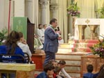 ...dopo la Comunione è seguito il saluto del Sindaco e del rappresentante delle Comunità Parrocchiali; l'offerta di un omaggio floreale ad Anna e Livio, genitori Don Nicola e la consegna di un nuovo computer portatile a Don Nicola, sicuramente molto utile nel nuovo impegno pastorale che sta per intraprendere. La serie di interventi si è concluso con il saluto augurale del Vicario Foraneo Mons. Livio Carlino, con il dono di una riproduzione longobarda della Croce di Gisulfo...