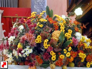 parrocchiale, addobbata con composizioni di fiori, frutta ed altri