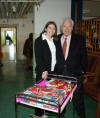 con il carrello dei ricordini da donare ad autorità, volontari e