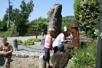 L'artistico Cristo intagliato all'entrata del paese, davanti al