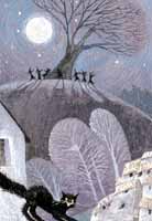 93. A Moggessa, piccolo borgo di Moggio, una volta all’anno le streghe si radunavano con la luna piena e ballavano tutta la notte. L’indomani il primo abitante che usciva di casa veniva trasformato in animale selvatico. Dopo un anno, in una bella notte di luna piena, esse si ritrovavano allo stesso posto a danzare e il malcapitato che era stato trasformato in bestia cercava di far ritorno alla propria casa. Se uno dei suoi familiari lo avesse accolto, le sue sembianze sarebbero tornate normali, altrimenti avrebbe dovuto ritentare l’anno successivo. MOGGIO113. Cuant ch’a l’ere fantaçute, le Munîne a le lave a portâ di mangjâ a so nôno, ch’al faseve il fornasêr ta fornâs di Raunis. Là sù, sot i crets, al sarà incjimò cualche stamp di fornâs. Une gnot le zòvine a si è sveade cul lusôr da le lune e a le crodeve ch’al si fases dì. Sicome in chê vôlte orlois no ’nd’ere, a l’è jevade di corse e a l’è partide cul mangjâ pal nôno tal gei. Cuant ch’a l’è rivade davant dal Bilic, a l’à vedût un om sentât su le bancje di clap ch’a’ j à diti: – Torne-indûr, frute… – Ma no, jo ài di portâ di mangjâ al nôno, jò! – Torne-indûr… – e dopo al è entrât ta cjase di front. Le Munîne no lu veve cognosût, ma lu à vedût di schene: di dûr al ere dut un scheletro blanc. Dome alore a’ si è rindude cont ch’al podeve jessi miegegnot, parceche a chê ore ai giràvin i spirts e le’ striis, ch’a le’ vèvin "voglio, posso, comando". Spaventade, a l’è tornade a cjase, tal jet, a spietâ dì. RACOLANE