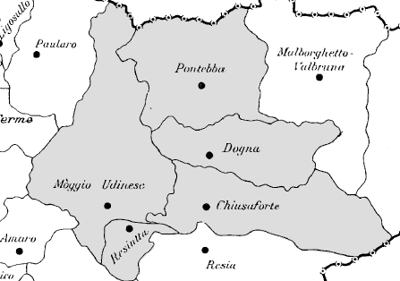 3. Le acquane erano tre zitelle di Chiusaforte, vecchie, che non volevano sapere di niente e di nessuno. Andarono a vivere sotto una roccia sporgente, a fianco della Macile, e tavolta scendevano giù fino al Fella. Avevano i piedi girati all’indietro e vivevano da selvagge. CHIUSAFORTE