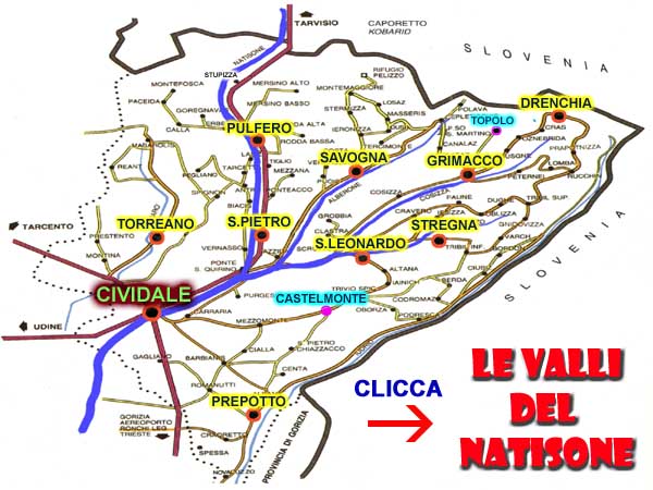 STORIA E CULTURA Grazie alla presenza di sorgenti ed acque abbondanti, alla ricca vegetazione ed al ripari naturali, l'ambiente delle Valli dei Natisone risultò adatto agli insediamenti umani preistorici. Vi sono sedi di epoca paleolitica e neolitica: la più antica è il riparo di Biarzo presso San Pietro al Natisone. La zona archeologica più consistente si trova presso San Pietro al Natisone dove si sono portate alla luce tombe dell'età dei bronzo, romane, celtiche e longobarde, Nel VI secolo ebbe inizio la penetrazione slava nel territorio friulano, cui seguì una colonizzazione intensiva e permanente. Gli antichi Slavi, chiamati poi Slavi delle Alpi o Sloveni entrarono nella storia grazie a Paolo Diacono con la sua "Storia dei Longobardi". La colonizzazione slava resistette a tutti i domini successivi: il Patriarcato di Aquileia, la Gastaldia di Antro, la Repubblica di Venezia. In questo periodo si perfezionò l'autonomia della "Schiavonia Veneta" e delle sue istituzioni: le "vicinie" e le "banche". Ne sono testimonianza le tavole di pietra, "lastre", attorno alla quale si radunavano i "decani". Alla caduta di Venezia seguirono i domini francesi ed austriaco e, nel 1866, seguì l'annessione all'italia. La popolazione conservò fino ai giorni nostri l'essenza della propria cultura e delle proprie tradizioni: la caratteristica parlata slovena, il repertorio di canti, danze e melodie popolari, la narrativa, la toponomastica, numerose tradizioni religiose, usanze legate a varie ricorrenze (il "kries" - falò di San Giovanni, il "pust" - carnevale, le questue natalizie, ecc.).