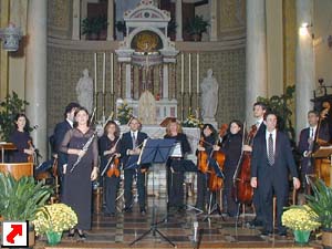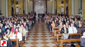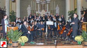 orchestra. A destra, il pubblico all'interno della parrocchiale