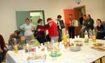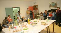 Camminando lungo il corridoio d'ingresso, sono stato accolto dai giovani ospiti come un vecchio amico ed osservando il borsone che tenevo tra le mani, uno di loro mi ha chiesto se avevo portato la macchina fotografica. Al centro della stanza “dei festeggiamenti” dove mi ero subito accomodato, erano già state preparate le tavolate con vari vassoi colmi di pizzette, tartine involtini ed affettati vari, con bottiglie di  bevande di vari colori. Nell’attesa degli ultimi ritardatari, nella sala giochi del piano superiore si è organizzato un mini-torneo di calcetto composto da coppie mix di giovani residenti e forestieri. Io non le ho seguite, ma mi hanno riferito che le gare si sono concluse senza vincitori ne vinti…