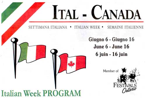 Come di consueto anche quest’anno Ottawa ha festeggiato la “Settimana Italiana”, con la partecipazione di gente da tutte le parti del mondo. Imponente la processione con la statua di Sant’Antonio (chiesa italiana principale di Ottawa), che ha attraversato le strade principali della città, chiuse al traffico per l'occasione. Degustazione di cibi di tutte le regioni italiane, gara di calcio e ciclistica, cinema italiani, gare a bocce, sfilata di moda, corteo di auto italiane, Show di automobili d'epoca, rappresentazione operistica in piazza ed altro ancora.