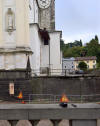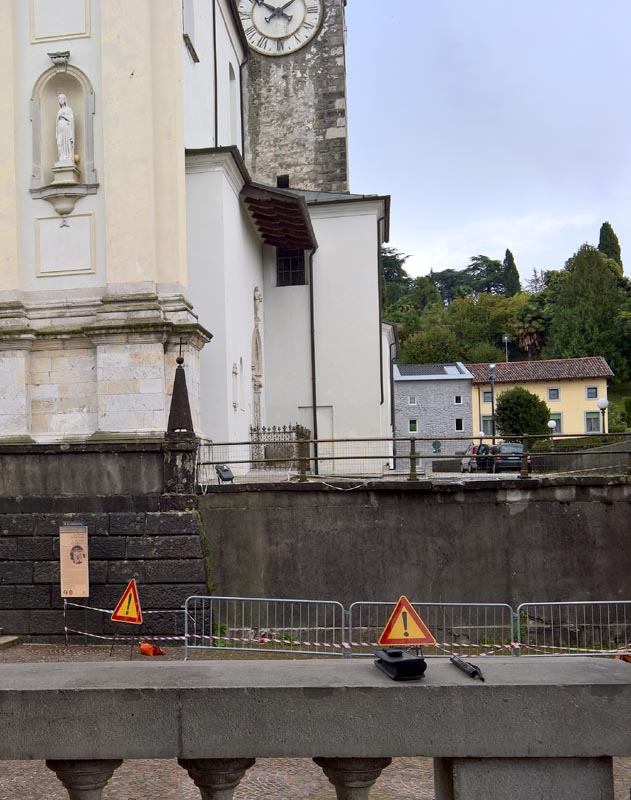 Duomo Santa Maria della Purificazione... La classica immagine all'entrata del paese e poi del Duomo, prima e dopo la Messa. Al centro la foto con i due registratori mentre riprendono la prima scampanata con ben quattro campane... si intravede anche l'entrata laterale alla chiesa con lo scivolo per i disabili, come nell'oltre il 50% dei casi... ermeticamente chiusa a chiave...
