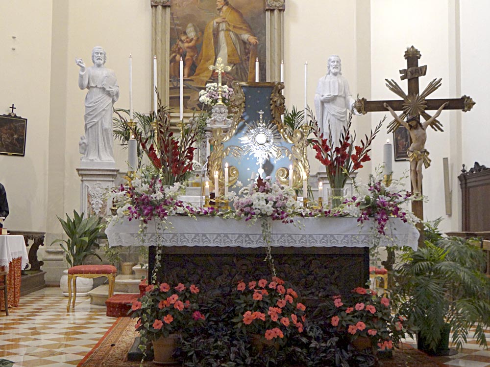 l'illuminazione concentrata sull’esposizione del SS. Sacramento...