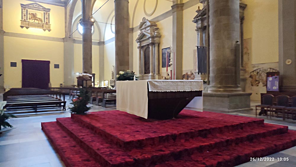 ...non sono sicuro al 100% ma credo di essere stato anche testimone di un "furto con scasso" delle offerte contenute nella cassetta posta sotto il gruppo di candele accese ai piedi del grande crocifisso a sinistra del presbiterio...
