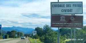 Queste riprese sono state effettuate dal sagrato del Duomo di Cividale del Friuli, dove si stà tenendo un'esposizione quest’anno dedicata all’artista friulano Nane Zavagno. Il progetto artistico vedrà la collocazione di alcune imponenti opere nel centro cittadino, tra la Loggia del Municipio, il Sagrato del Duomo, piazza Paolo Diacono, il giardino delle Vigne e la quadreria del Monastero di Santa Maria in Valle.