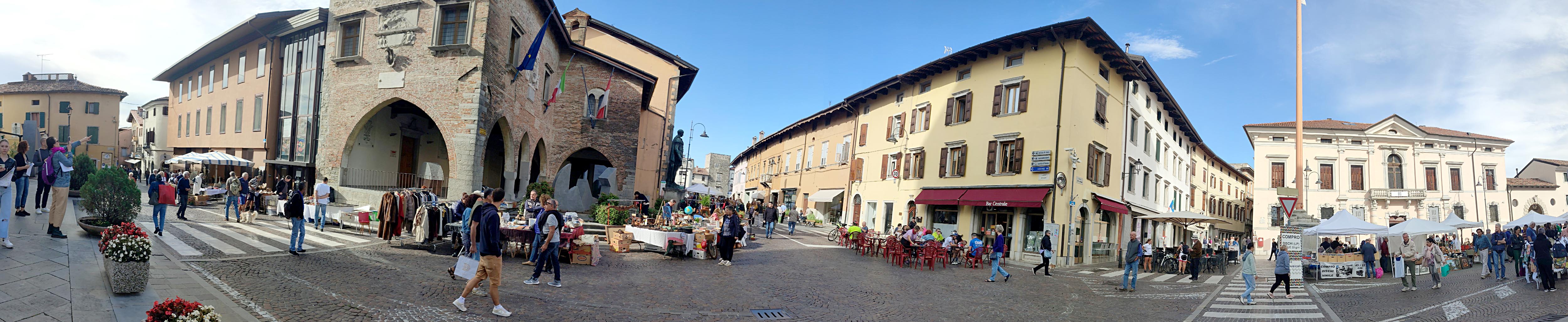 ...propongo questa panoramica 5000x1000 pixel, per poterla zoommare ed osservarla anche nei dettagli...Zona Duomo raggiunta con una certa difficoltà per l'impossibilità di trovare un posto macchina libero, per cui ho dovuto parcheggiare nei pressi dell'ex Stazione Ferroviaria. Devo dire però che è stato un divertimento transitare tra le centinaia di bancarelle cariche di "strafanissi" di tutti i tipi... tanto che mi sono amaramente pentito di non aver pensato di effettuare una serie di riprese per mettere in rilievo la particolare situazione di riprendere le austere figure di Giulio Cesare Augusto e di Adelaide Ristori, circondate da bancarelle cariche di questi tantissimi strani oggetti di tutti i tipi.